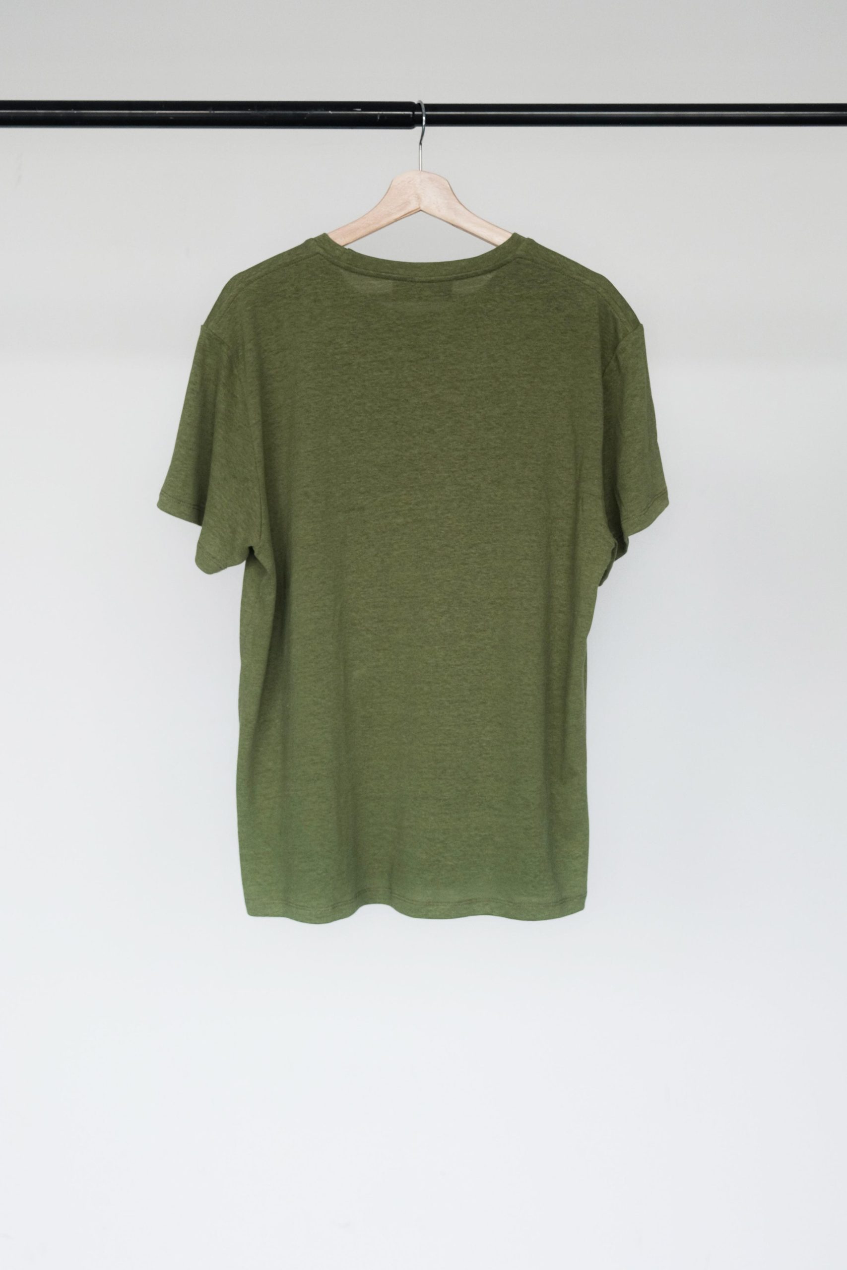 — Loose-fit tee in hemp-cotton blend. Self-fabric collar, twin-needle seams. Light, non-clingy.